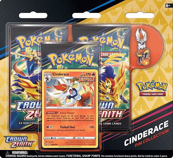 Høydepunktet i denne pakken er det flotte Cinderace-promokortet og den detaljerte samle-pinnen som følger med. Siden Crown Zenith var et "special set", kunne man aldri kjøpe løse booster-bokser, noe som gjør disse mindre samle-produktene ekstra verdifulle i 2026.
