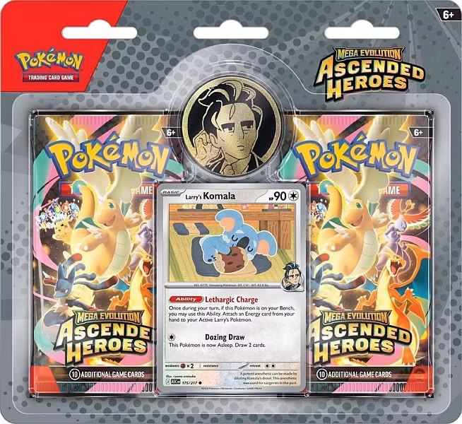 Bli med til Medali i Paldea-regionen og møt den mest jordnære Gym-lederen av dem alle – Larry! I denne spesialutgaven fra Mega Evolution—Ascended Heroes får du et eksklusivt foil promo-kort av Larry's Komala, samt en unik metallmynt med bilde av Larry selv.