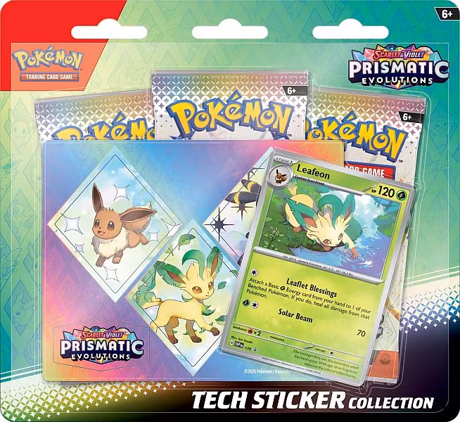Opplev naturens kraft med Prismatic Evolutions! Dette spesialsettet hyller de utrolige utviklingene til Eevee, og i denne Tech Sticker-kolleksjonen er det den elegante Leafeon som er stjernen.