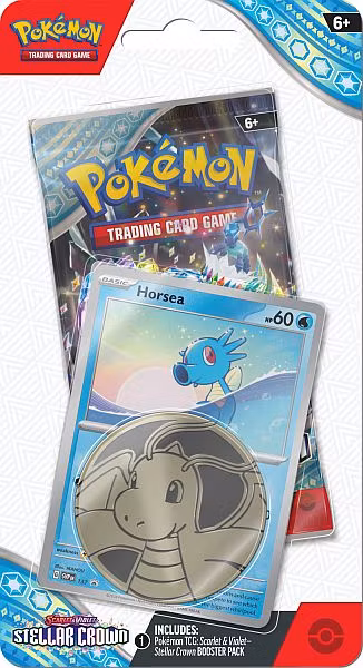 Denne utgaven inneholder et eksklusivt Horsea Black Star Promo-kort som du ikke finner i de vanlige booster-pakkene, samt en stilig Pokémon-mynt til samlingen din.