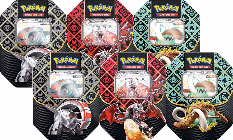 Lyset skinner på de sjeldne Shiny Pokémon fra Paldea-regionen! Paldean Fates bringer tilbake de ettertraktede Shiny-variantene i en moderne drakt. Dette komplette displayet inneholder 6 tinnbokser, hver med sitt eget unike promokort og flere booster-pakker fra dette spesielle settet.
