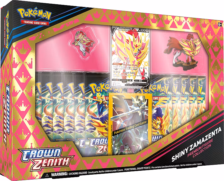 Opplev den majestetiske magenta- og gullfargede kraften til Shiny Zamazenta! Som en del av det legendariske avslutningssettet Crown Zenith, er denne Premium Figure Collection en drøm for enhver samler.