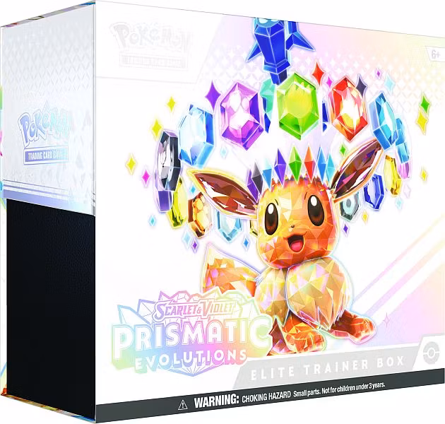 Opplev de fantastiske Eevee-evolusjonene i det ettertraktede Prismatic Evolutions-settet! Denne Elite Trainer Boxen er den perfekte måten å kickstarte samlingen din på.